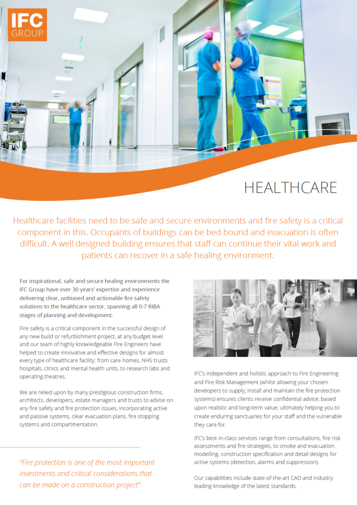 Healthcare facilities need to be safe and secure environments, and fire safety is a critical component in this. Occupants of buildings can be bed bound and evacuation is often difficult. A well designed building ensures that staff can continue their vital work and patients can recover in a safe healing environment.