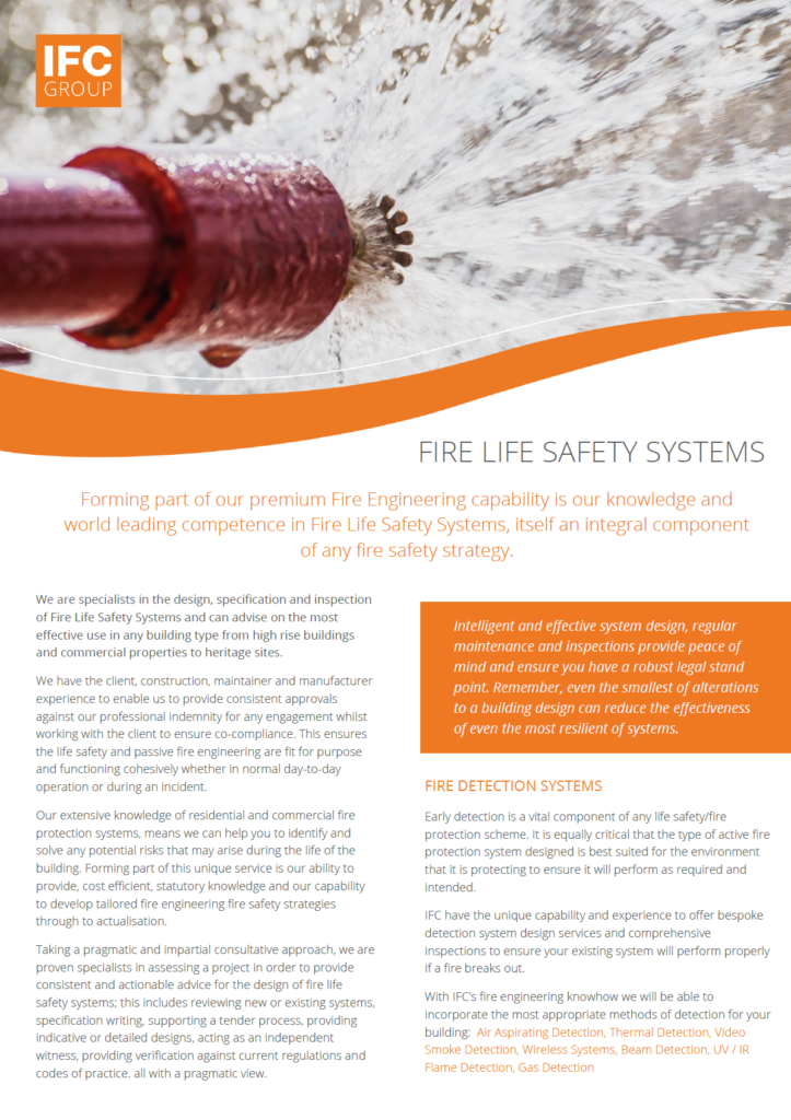 Forming part of our premium Fire Engineering capability is our knowledge and world leading competence in Fire Life Safety Systems, itself an integral component of any fire safety strategy. We are specialists in the design, specification and inspection of these systems and can advise on the most effective use in any building type from high rise buildings and commercial properties to heritage sites.