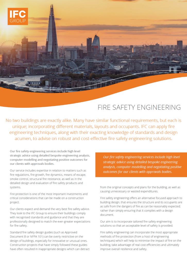 Our fire safety engineering services include high level strategic advice using detailed bespoke engineering analysis, computer modelling and negotiating positive outcomes for our clients with approvals bodies.